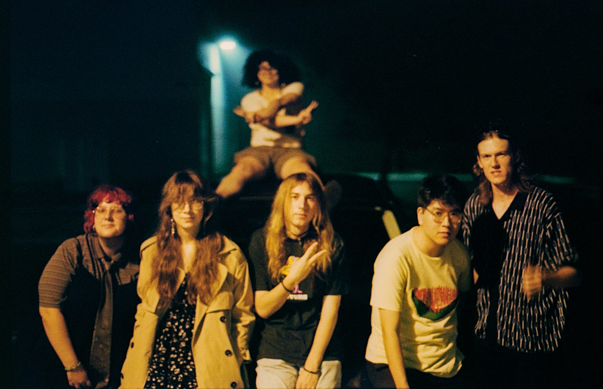 I don't think so. But it's weird because when we had eight or nine people, everyone was always dressed so differently, so it just looked like...well, we looked like the Village People, frankly. I was wearing the mask and then Maya [Hoss], the sax player, would wear a crop top and jeans and these old ass battered tennis shoes. And then Riley would dress to the nines, dude. And then we had Joe [Joseph K], who always dressed like a cowboy. We had [bassist/vocalist Jonas Phipps] dressing more grunge. [Anderson Myers], our drummer, that guy just wore anything. He would do the Japanese [hakama] look and then, like, an Under Armor shirt.